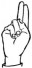 На ћирилици написано КОСТА БЕШЛИН састоји се из 11 слова [?]. Исписано ћириличном једноручном азбуком за глувонеме:
